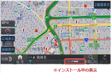 地図画面下部に「インストール中」が約2時間表示されます。