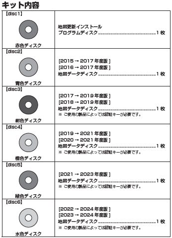 地図ディスク:disc1、4、5、6を使用