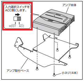 OPTM8-HIのアンプ本体の入力選択スイッチをACC側に設定してください。
