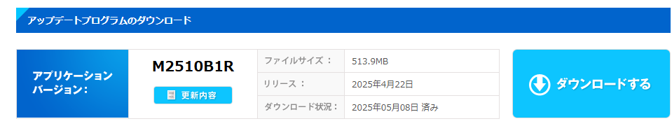 アップデートプログラムは「ユーザーズルーム」よりダウンロード可能です。