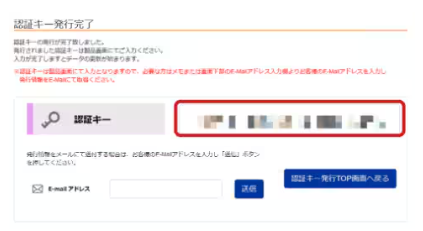 内容を確認後、「認証キー発行」を選択すると、16桁の認証キーが表示されます。