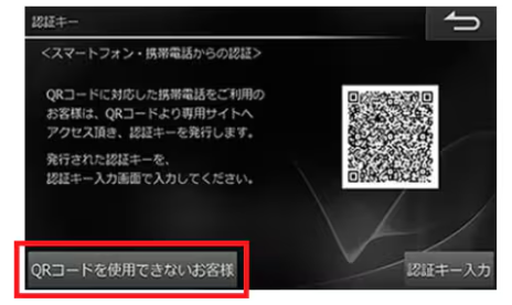 ※マニュアルに記載されているQRコードでは認証キーを発行できません。必ずナビゲーション画面に表示されたQRコードをご使用ください。